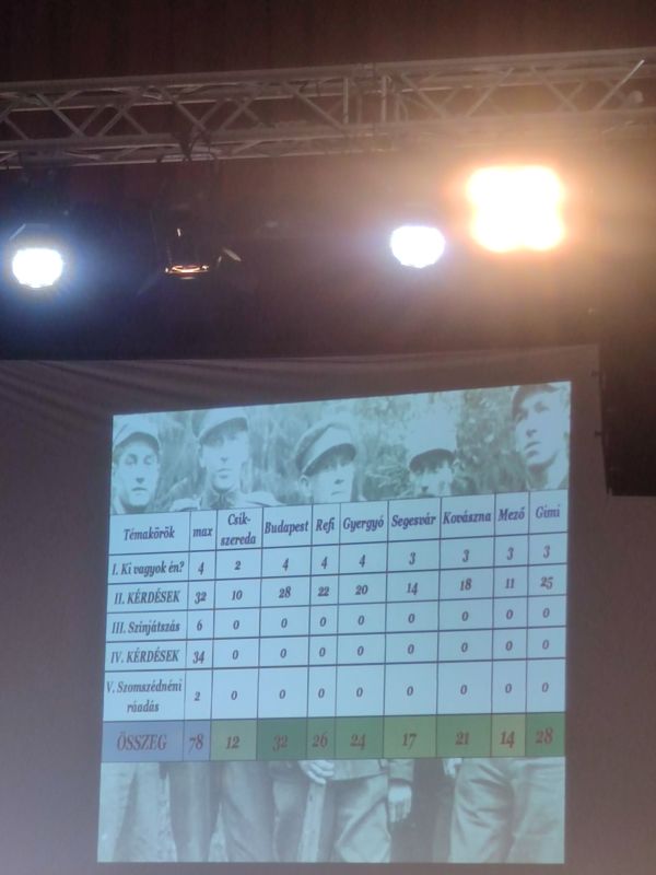 Szoros verseny alakult ki, aminek az első, összetett fordulóját megnyerte a magyar csapat 6 ponttal. A második fordulóban a villámkérdések döntöttek. Itt csak három ponttal maradt le a Hunfalvy-s csapat a helyi Református Gimnázium mögött, így második helyezést ért el.